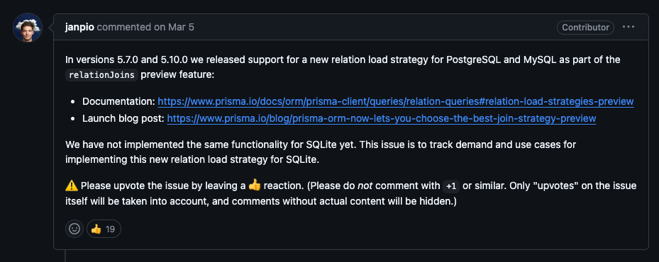 추가적으로, prisma는 5.10.0버전부터 relationJoins라는 신규 쿼리 옵션을 지원하는데,