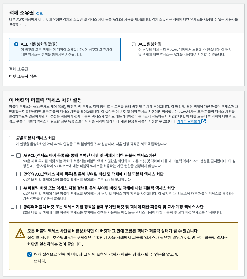 S3 버킷 생성 시 퍼블릭 액세스를 허용해도 객체 조회 시 AccessDenied에러가 발생한다.